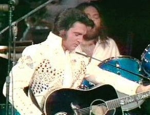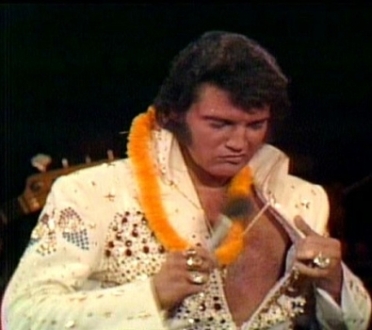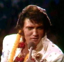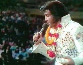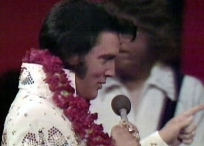 Elvis Presley in seinem Fernseh-Live-Konzert „Elvis Aloha From Hawaii Via Satellite“ beim amerikanischen TV-Sender „NBC“ im „International Center“ in Honolulu/Hawaii am Sonntag, dem 14. Januar 1973. Elvis trägt den neuen „Aloha Eagle Suit“ und singt in der Halle vor 6000 Fans (ausverkauft). „NBC“ überträgt mit Marty Pasetta als Produzent das 60-minütige Konzert über den Satelliten „Intelsat IV“ live in die Kontinente Asien und Ozeanien. Rund 15 Länder übernehmen die Live-Übertragung, darunter Japan, Südkorea, Hongkong, Südvietnam, Thailand, Malaysia, Singapur, die Philippinen, Australien und Neuseeland. Die Einschaltquoten brechen dabei alle Rekorde und liegen zwischen 70 und über 90 Prozent. In Nordamerika ist aus Marketing-Gründen die Show nur als spätere Aufzeichnung zu sehen: „NBC“ sendet in den USA „Aloha From Hawaii“ – ergänzt durch vier nachträglich in der leeren Halle aufgenommene und mit wunderschönen hawaiianischen Landschaftsaufnahmen verbundene Bonus-Songs – am 4. April 1973. In Europa scheuen die Fernsehsender angeblich aus Kostengründen eine Übernahme der Live-Übertragung und senden zwischen Januar und April 1973 Aufzeichnungen. Doch auch die aus der ‚Konserve’ kommenden Ausstrahlungen erzielen sensationelle Einschaltquoten von meist über 50 Prozent. Ingesamt sehen bis Mitte 1973 rund eine Milliarde TV-Zuschauer in 36 Ländern der Erde die „Aloha From Hawaii“-Show, die damit zum endgültigen absoluten Höhepunkt der einzigartigen Karriere von Elvis Presley wird.