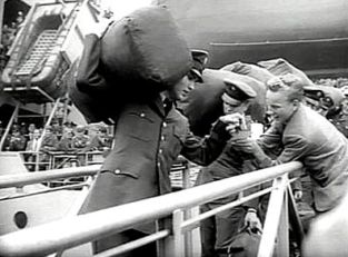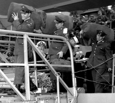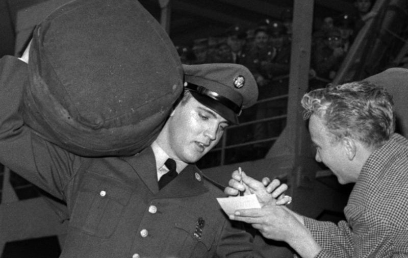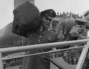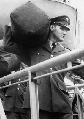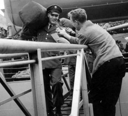Elvis Presley bei seiner Ankunft und während seines ersten Tages als Soldat der US-Army in Deutschland am 1. Oktober 1958. Hohe Militärstellen in den USA haben beschlossen, den berühmten G. I. Presley aus werbepolitischen Gründen in das im „Kalten Krieg“ strategisch wichtige Deutschland zu versetzen. Und so erreicht das Truppentransportschiff „General Randall“, das am 22. September 1958 in New York City abgelegt hat, mit Elvis und über Tausend weiteren US-Soldaten gegen 9.00 Uhr morgens an diesem Mittwoch, dem 1. Oktober 1958, die Kolumbuskaje in Bremerhaven. Die Uhren zeigen 9.22 Uhr, als Elvis mit geschultertem Seesack lächelnd die Gangway herunter schreitet, an deren Ende Dutzende von Medienvertretern und knapp 1000 überwiegend junge deutsche Fans ihn begeistert empfangen. Unglück im Glück hat in diesem Moment der 16-jährige Helge Rotenberg, dem es zwar gelingt, sich hinter die Absperrungen der deutschen Polizei und der amerikanischen Militär-Polizei zu mogeln und an der Gangway hochzuklettern, das ersehnte Autogramm aber dennoch nicht bekommt, da Elvis nur die linke Hand frei hat und schnell weitergehen muss. Den Pressevertretern unten ergeht es nicht viel besser, weil Elvis’ Vorgesetzte ihrem berühmten Untergebenen für den Ankunftstag Sprechverbot erteilt haben, so dass mehr als kurze Sätze wie „Hallo! Ich freue mich, hier zu sein!“ dem jetzt Uniform tragenden einstigen Rock’n’Roll-König nicht zu entlocken sind.