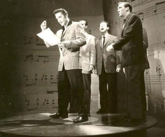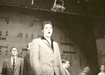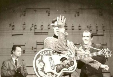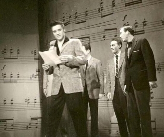 erkennt man auf den Fotos Elvis’ Begleitchor „The Jordanaires“ und seine Band „The Blue Moon Boys“. In der