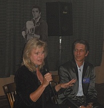 authentische Erinnerung an ihn stand. Kaum ein Fan dürfte bislang einmal die Gelegenheit gehabt haben, Elvis’ oftmals etwas unterbewerteten 1966er Spielfilm „Paradise, Hawaiian Style“ auf großer Leinwand zu sehen. Umso aufmerksamer verfolgten die Besucher die Vorführung des Films, in deren Anschluss es eine kleine Überraschung gab in Form einer rund 10-minütigen Video-Selbstvorstellung, die Stargast Suzanna Leigh mit nach Bonn gebracht hatte und die ihr langjähriges Filmschaffen Revue passieren ließ. Dann war es auch schon so weit: Unter tosendem Applaus betrat Suzanna Leigh zu ihrem allerersten Auftritt auf einem deutschen Elvis-Event den Saal. Das folgende Interview mit Elvis’ Co-Star aus „Paradise, Hawaiian Style“ sollte etwa 20 Minuten dauern, ging aber gut doppelt so lang, denn das, was die britisch-amerikanische Schauspielerin im Gespräch mit Peter Beines zu erzählen hatte, war so interessant und so unterhaltsam vorgetragen, dass die Zuhörer das Interview wie gebannt verfolgten und die Zeit wie im Fluge verging. Suzanna Leigh stellte insbesondere heraus, dass Elvis nach ihrer persönlichen Erfahrung ein Schauspieler mit herausragendem Talent gewesen war und dass sie ihn persönlich als einen außergewöhnlich charmanten, spirituellen und großzügigen Menschen erlebt hatte. Weniger gut kam dagegen sein Manager ‚Colonel’ Parker weg, den sie als rüde und ungehobelte Person wahrgenommen hatte, nicht nur weil er aufgrund ihres angeblich zu engen Kontaktes zu Elvis verhinderte, dass Produzent Hal Wallis sie auch für den Spielfilm „Easy Come, Easy Go“ besetzte. Auf das Interview folgte eine kurze Autogrammstunde, ehe zum letzten Programmpunkt „Elvis Junior“ das Mikrofon ergriff. In einer knapp einstündigen Live-Show bot der Belgier viele bekannte aber auch weniger bekannte Elvis-Songs dar und zeigte, warum er als einer der besten Elvis-Interpreten Europas gilt: Mit kraftvoller Stimme und sympathischer Ausstrahlung trug „Elvis Junior“ die Lieder vor, OHNE Elvis in irgendeiner Weise zu imitieren, was die Fans zu großem Applaus und teilweise begeistertem Mittanzen brachte. Am Ende gab es überall nur positive Kommentare zu hören und die dringende Bitte, so etwas bald zu wiederholen. Schade war lediglich, dass das Event von den Bonnern kaum angenommen worden war, denn die rund 50 Besucher waren zum überwiegenden Teil aus dem Ruhrgebiet, aus den Räumen Koblenz und Frankfurt und aus Belgien nach Bonn gekommen. Die „Elvis Film-Nacht“ im wunderschönen und perfekt geeigneten Ambiente des „Schützenhof“ hatte mehr Zuspruch verdient gehabt. Nichtsdestoweniger gilt unser großer Dank dem begeisterungsfähigen und sachkundigen Publikum, den authentischen Stargästen, dem gastfreundlichen Team des „Schützenhof“, den äußerst engagierten Mitarbeiterinnen und Mitarbeitern von „The King’s World“ und unseren Freunden vom belgischen Fanclub „Elvis Memories“ von Sylvain Vertez!