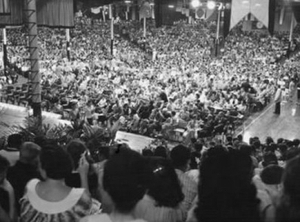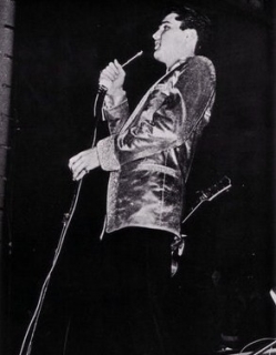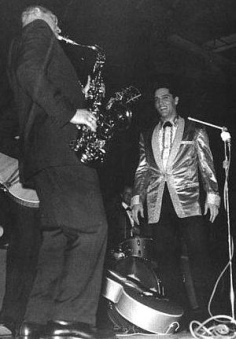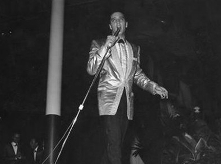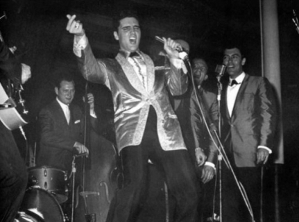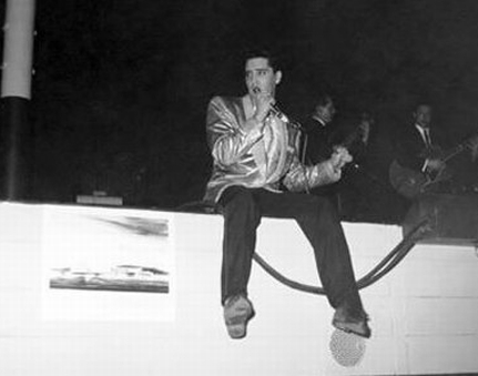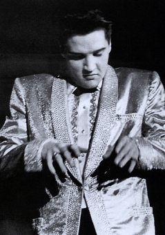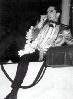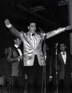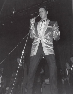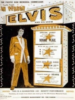 Elvis Presley live in der „Bloch Arena“ in Pearl Harbor/Hawaii, Samstag, 25. März 1961. Elvis trägt noch einmal das Jackett des schon aus dem Jahr 1957 bekannten „Gold Lamé Suit“ und singt vor 4800 Fans (ausverkauft). Das Konzert ist eine Benefizveranstaltung zugunsten des Baus des „USS Arizona Memorial“, einer Gedenkstätte für das im 2. Weltkrieg von japanischen Flugzeugen versenkte amerikanische Schlachtschiff „USS Arizona“ und der dabei getöteten 1177 amerikanischen Marinesoldaten. Elvis’ Benefizkonzert spielt 62 000,- US-Dollar für diesen Zweck ein, so dass die Gedenkstätte im Mai 1962 fertig gestellt werden kann. In seiner Show singt Elvis sowohl seine frühen Hits als auch aktuelle neue Titel. Auf den Fotos erkennt man in Elvis’ Begleitband Hank Garland und Scotty Moore an den Gitarren, Bob Moore am Bass und Homer „Boots“ Randolph am Saxophon sowie den Begleitchor „The Jordanaires“. Im Vorprogramm der Elvis-Show tritt u. a. Comedian Minnie Pearl auf. Das „USS Arizona Memorial Benefit Concert“ ist Elvis letzter öffentlicher Live-Auftritt bis zum großen Comeback von 1968/69.