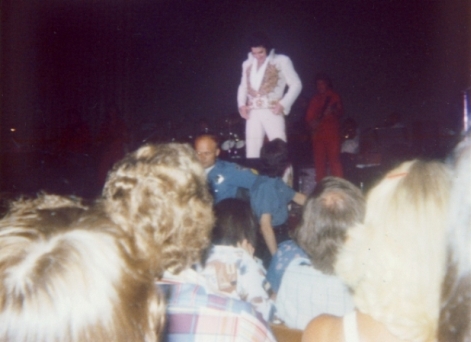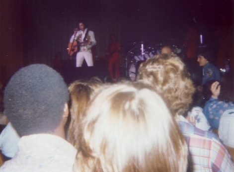 Elvis Presley live in der „Sioux Falls Arena“ in Sioux Falls/South Dakota, Mittwoch, 22. Juni 1977. Elvis trägt den „Mexican Sundial Suit“ und singt vor 8000 Fans (ausverkauft). Das Konzert ist Bestandteil der allerletzten Konzert-Tournee des King of Entertainment durch die USA weniger als zwei Monate vor seinem Tod. Die Tournee hat am 17. Juni 1977 in Springfield/Missouri begonnen und endet am 26. Juni 1977 in Indianapolis/Indiana. In Sioux Falls bietet Elvis trotz seiner sich ständig verschlimmernden Krankheiten eine solide Show und begeistert seine Fans in ungebrochener Weise. Das Konzert ist bis heute die am wenigsten dokumentierte Show dieser letzten Tournee. Die hier erstmals überhaupt gezeigten Fotos aus dem Eröffnungsblock des Konzertes bleiben 35 Jahre lang unveröffentlicht und werden erst im Jahr 2012 von der Leitung von „The King’s World“ bei einem deutschen Elvis-Fan in Hessen entdeckt, der seinerzeit anlässlich eines Besuches von Verwandten in den USA das Konzert gesehen hat.