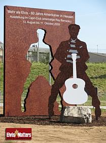 Am vergangenen Wochenende (15./16. August) wurde zu Elvis’ 32. Todestag in Friedberg/Hessen, wo Elvis von 1958 bis 1960 als US-Soldat stationiert gewesen war, ein riesiges Elvis-Denkmal eingeweiht. Die Statue ist über 5 Meter hoch und 3,75 Meter breit. Das neue Denkmal befindet sich am Kreisverkehr, der nahe dem Eingang zum Capri Club liegt. Wenn man somit nun durch Friedberg geht, ist das Erste, was man sieht, eine riesige Silhouette von Elvis aus dem Film „Jailhouse Rock“. Datum: 20. August 2009 – Quellen: Stadt Friedberg, Fanclub „Elvis Matters“ |