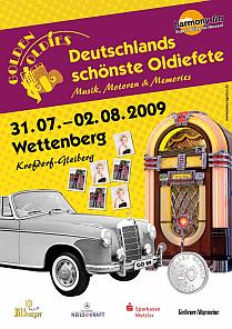 Vom 31. Juli bis zum 2. August 2009 findet bereits zum 20. Mal das Golden Oldies Festival in Wettenberg in Hessen statt. An drei Tagen spielen auf neun Bühnen insgesamt 50 Bands und Interpreten. Auch die „Elvis Revival Band“ gehört dazu und hat am Sonntag, 2. August, um 15.00 Uhr auf der Bühne B (Schieferstrasse) ihren Auftritt. Zum Festival-Programm gehören auch Autoparaden, Ausstellungen und eine große Sammlerbörse. Nähere Infos unter www.goldenoldies-wettenberg.de Datum: 7. Juli 2009 – Quelle: Golden Oldies Festival Wettenberg |