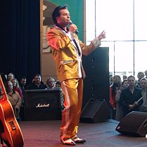 Für viel positives Aufsehen sorgt seit geraumer Zeit das neue deutsche Elvis-Musical „The Elvis Story“ von Marc Philip und Andreas Reiswig. Die große Premiere am 4. Juli 2009 im Harzer Kongress- und Kulturzentrum in Wernigerode gelang auf ganzer Linie und wusste nicht nur musikalisch sondern auch durch originalgetreue Kostüme und eine historisch korrekte Darstellung der Karriere Elvis Presleys zu gefallen. Die zweite Aufführung ist für den 1. August angesetzt, wieder in Wernigerode. Karten zum Preis von EUR 39,- gibt es im Internet unter www.proticket.de oder unter der Ticket-Hotline 01803 - 776 842. Bitte lesen Sie hierzu auch unsere Vorschau im Link „Elvis-Events“! Datum: 18. Juli 2009 – Quelle: Harzland-Events |