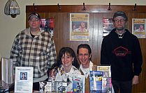 Sehr erfreulich verlief der unter dem Motto „Winter Wonderland“ stehende „Elvis Christmas Circle“ am vergangenen Sonntag, 13. Dezember 2009, in der Gaststätte „Zur Postkutsche“ in Datteln bei Recklinghausen. Organisator Horst Gerwerth (Foto oben) konnte fast 50 Elvis-Fans zu seiner Veranstaltung begrüßen, in deren Mittelpunkt wie immer Elvis-Videos auf Leinwand sowie diesmal auch kurze Live-Auftritte der Elvis-Imitatoren Oliver Steinhoff und Shaky Everett standen, die sowohl Weihnachts- und Gospel-Titel als auch weltliche Hits von Elvis zum Besten gaben. Das Team von „The King’s World“ war mit vier seiner sechs Mitarbeiter (Thomas Wagner, Sandra und Peter Beines, Thomas Schwedtmann – Foto unten) vor Ort vertreten und nutzte die Gelegenheit, auf die kommenden großen Veranstaltungen „Elvis – Die Show“ (Berlin, 26. und 27. Dezember 2009) und „The Elvis 75 Party“ (Bonn, 16. Januar 2010) hinzuweisen. Die nächste Elvis-Veranstaltung von Fan-Urgestein Horst Gerwerth (s. auch „Fan-Stories“) wird indes am Samstag, dem 30. Januar 2010 stattfinden, dann zur Nachfeier von Elvis’ 75. Geburtstag unter dem Motto „Pure Elvis“. Datum: 14. Dezember 2009 |