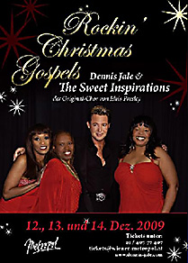 Auch im kommenden Winter wird der österreichische Entertainer und Elvis-Interpret Dennis Jale wieder zwei große Konzert-Wochenenden mit originalen Musikern und Begleitsängern von Elvis durchführen. Bei „Rockin’ Christmas Gospels“ am 12., 13. und 14. Dezember 2009 treten die Sweet Inspirations mit Jale auf. Unter dem schlichten aber eindeutigen Titel „Elvis’ 75th Birthday“ finden vom 15. bis zum 17. Januar 2010 drei weitere Konzerte statt mit der TCB Band und erneut den Sweet Inspirations sowie mit Elvis’ Privatsekretär und Roadmanager Joe Esposito als Special Guest. Location für alle Shows ist das altehrwürdige Metropol-Theater in Österreichs Hauptstadt Wien. Datum: 11. September 2009 – Quelle: Dennis Jale |