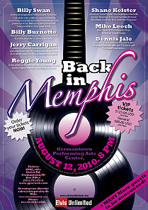 Sehr guten Zuschauerzuspruch und viel Applaus ernteten die Konzerte, die EPE im Rahmen der „Elvis 75 Birthday Celebration“ in Memphis angeboten hatte. Das Konzert „Elvis Birthday Pops“ am 9. Januar 2010 im Cannon Center, bei dem Terry Mike Jeffrey (im Foto mit James Burton) als Sänger fungierte und mit dem Memphis Symphony Orchestra und Elvis’ TCB Band auftrat, wurde zu einem großen Erfolg und überraschte mit einer ungewöhnlichen Songliste die z. B. „I’ll Never Fall In Love Again“, „My Boy“ und „Any Day Now“ enthielt sowie eine völlig neu entworfene und arrangierte instrumentale „Elvis-Ouvertüre“, bestehend aus „Love Me Tender“, „Jailhouse Rock“ und „Can’t Help Falling In Love“. Nicht minder beeindruckend war die bereits im Voraus ausverkaufte „Southern Gospel Celebration“ mit Elvis’ Imperials, mit der am 10. Januar 2010 im großen Ticket-Pavillon vor Graceland die Geburtstagsfeierlichkeiten würdevoll ausklangen. Datum: 13. Januar 2010 – Quellen: Diverse |