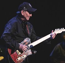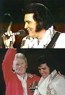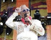 Wie angekündigt fand am vergangenen Samstag, dem 26. Juni 2010, im Toyota Park in Chicago/Illinois das alljährliche „Crossroads Guitar Festival“ von Gitarrenlegende Eric Clapton statt, bei dem neben B. B. King und ZZ Top auch Elvis’ langjähriger Leadgitarrist James Burton zu Gast war. Seltsam mutete dabei der Gastauftritt des bekannten Schauspielers Bill Murray an, der als ‚Spaßeinlage’ im Elvis-Jumpsuit auf der Bühne erschien. James Burton, der jede Form von Elvis-Imitation im Jumpsuit kategorisch ablehnt, dürfte von der Einlage wenig angetan gewesen sein… Datum: 29. Juni 2010 – Quelle: Fanclub „Elvis Matters“ |