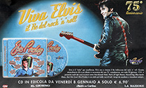 So wie überall auf der Welt wird sich auch in Italien zu Elvis’ 75. Geburtstag vieles um den King drehen. Unter der Schlagzeile „Viva Elvis – Il Re Del Rock’n’Roll“ kann man am 8. Januar 2010 an Zeitungskiosken und in Geschäften als Beilage zu verschiedenen italienischen Tageszeitungen für EUR 6,90 eine CD-Sonderveröffentlichung kaufen, die den Titel „Elvis Presley: The Legend – 75th Anniversary“ trägt. Die CD enthält eine Zusammenstellung früher Elvis-Hits. Datum: 1. Januar 2010 – Quelle: Livio Monari/EP Gold |
