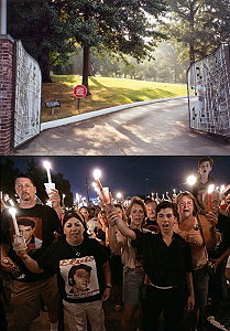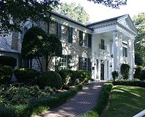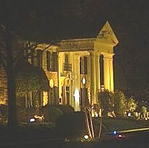 Auf mehrfachen Wunsch von Fans zeigen wir nebenstehend die seit vorgestern Abend rot-weiß-blau angestrahlte Elvis-Villa Graceland in Memphis. EPE hatte wie berichtet die Sonderbeleuchtung eingerichtet zum Zeichen der Unterstützung des überraschend erfolgreichen USA-Teams, das bei der Fußball-WM in Südafrika im Achtelfinale steht. Fußball spielt in den USA hinter American Football, Baseball und Basketball nur eine untergeordnete Rolle. Datum: 26. Juni 2010 – Quelle: Elvis Presley Enterprises (EPE) |
