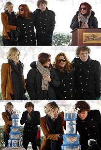 Unzählige Elvis-Fans in aller Welt haben am 8. Januar 2010 im Internet die Live-Übertragung der Zeremonie auf der Graceland Plaza zu Elvis Presleys 75. Geburtstag verfolgt. Wegen der eisigen Kälte in Memphis wurde die Veranstaltung kürzer gehalten als ursprünglich geplant. Nach Ansprachen von EPE-Präsident Jack Soden und Bürgermeister A.C. Wharton (Foto unten) trat Elvis’ Ex-Frau Priscilla Presley ans Mikrofon und richtete Worte des Dankes an die trotz der Kälte zahlreich anwesenden Fans, ehe auch Tochter Lisa Marie Presley sich zögerlich dazu entschied, für einen kurzen Moment ans Rednerpult zu treten. Überraschender Weise waren es dann Elvis’ Enkelkinder Benjamin und Riley, denen die Ehre zuteil wurde, die in Form eines Schneemannes gehaltene riesige Geburtstagstorte für ihren Großvater anzuschneiden. Damit waren erstmals drei Presley-Generationen offiziell bei einer Elvis-Veranstaltung in Graceland zugegen. Auf besondere Weise Respekt verdienten sich die in Memphis anwesenden Vertreter der Fanclubs „Elvis Unlimited“ (Dänemark) und „Elvis Matters“ (Belgien), die bereits nach wenigen Stunden Fotos von der Zeremonie weltweit verfügbar machten. Datum: 9. Januar 2010 |