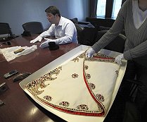 Wie von uns in einer Meldung vom 23. Mai 2010 angekündigt, fand in den vergangenen drei Tagen in Calabasas Hills/California die Versteigerung „Hollywood Auction“ des Auktionshauses „Profiles In History“ statt, bei der auch viele Elvis-Artikel angeboten wurden. So wechselte der Anzug, den Elvis im Film „It Happened At The World’s Fair“ von 1963 getragen hatte, für 11 000,- Dollar den Besitzer. Eine der ersten 12 TCB-Ketten, die Elvis zur Auszeichnung von Freunden und Mitarbeitern angeschafft hatte (s. Foto), wurde für 6000,- Dollar verkauft, und eine Diamantkette, die Elvis dem Schauspieler Jack Lord geschenkt hatte, ging für 5500,- Dollar weg. Mehrere Ringe konnten für über 3000,- bis über 4000,- Dollar versteigert werden und eine Karateauszeichnung von 1973 mit den Unterschriften von Elvis’ Karatelehrer Kang Rhee und von Elvis selbst für 4500,- Dollar. Einige weitere Stücke fanden keine Käufer, darunter eine dunkelblaue Samtjacke von Elvis. Datum: 13. Juni 2010 – Quellen: Profiles In History, Fanclub „Elvis Unlimited“ |