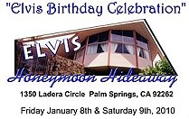 Am kommenden Wochenende (8. und 9. Januar 2010) wird es auch in Elvis’ ehemaligem Haus in Palm Springs/California eine „Elvis Birthday Celebration“ geben. Das Programm besteht unter anderem aus Live-Musik von einer Elvis-Coverband. Im Mai 1967 hatten Elvis und Priscilla ihre Flitterwochen in dem Anwesen verbracht, welches Jahrzehnte später wiederum als Ort eines Teils der Dreharbeiten für die Dokumentation „Elvis By The Presleys“ diente. Datum: 4. Januar 2010 – Quelle: Elvis Infonet |