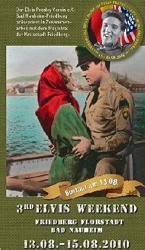 Der seit 2008 reformierte und reorganisierte „Elvis-Presley-Verein Bad Nauheim-Friedberg e. V. (EPV)“ wird im August 2010 mit seinem „3. Elvis Weekend“ den 33. Todestag des King besonders begehen. Die Veranstaltung findet hauptsächlich in Friedberg statt, der Stadt also, in der Elvis während seines Militärdienstes für die US-Army zwischen Oktober 1958 und März 1960 in den „Ray Barracks“ als Soldat stationiert gewesen war. Das „3. Elvis Weekend“ beginnt am Freitag, dem 13. August 2010, und dauert bis Sonntag, dem 15. August 2010. Zum Programm gehört vor allem die seit Jahren beliebte Bus-Tour auf den Spuren des Elvis-Films „G. I. Blues“, geleitet von Deutschlands vielleicht prominentestem Elvis-Fan Claus-Kurt Ilge und seiner Lebensgefährtin Elvira Spohn. Daneben gibt es diverse Konzerte von deutschen Elvis-Imitatoren wie Rio, Kai von Kajdacsy und Rami sowie Auftritte des „Rockin’ Twister Duo“ und der Rockabilly-Band „The Wild Bobbin’ Baboons“, die im Bürgerhaus in Friedberg-Florstadt, in der „Burg“ in Friedberg und im „Pfälzer Hof“ in Bad Nauheim über die Bühne gehen werden. Auch ein ‚Meeting Point’ mit Verkaufsständen und ein Fackelzug zum Elvis Presley-Platz in der Kaiserstraße in Friedberg werden angeboten. Der EPV präsentiert das „3. Elvis Weekend“ in Zusammenarbeit mit dem Magistrat der Stadt Friedberg und dem privaten regionalen Fernsehsender „Bad Nauheim TV“. Nähere Infos finden sich unter www.elvis-presley-verein.de Datum: 20. Juni 2010 – Quelle: Elvis-Presley-Verein Bad Nauheim-Friedberg (EPV) |