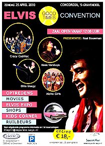 Sylvain Vertez vom belgisch-niederländische Fanclub „Elvis Memories Belgium“ hat bereits jetzt für den Herbst 2010 seine nächste große Veranstaltung angekündigt. Das Event trägt den Titel „2. Elvis Weekend Breda“ und wird über zwei Tage hinweg am Samstag und Sonntag, dem 9. und 10. Oktober 2010, in der niederländischen Stadt Breda stattfinden, aus der Elvis’ Manager ‚Colonel’ Tom Parker stammt. Das genaue Programm der Veranstaltung steht noch nicht fest, wird allgemein aber aus Live-Musik von Cover-Bands und Elvis-Imitatoren, Videovorführungen und Verkaufsständen bestehen. Datum: 15. Januar 2010 – Quelle: Fanclub „Elvis Memories Belgium“ |