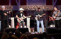 In diesen Tagen feiert die „Grand Ole Opry“, der legendäre Country-Musik-Tempel in Nashville/Tennessee, ihr 85-jähriges Bestehen. Auffällig war, dass bei der Jubiläums-Show im altehrwürdigen „Ryman Auditorium“ der bekannte Gitarrist Brad Paisley (2. v. l.) ein James Burton-T-Shirt trug. Elvis selbst hatte an die „Grand Ole Opry“ alles andere als gute Erinnerungen, nachdem man ihn dort 1954 komplett abgelehnt hatte. Umso mehr wird er den weiteren Verlauf seiner Karriere als große Genugtuung empfunden haben… Datum: 3. Juni 2010 – Quellen: The Grand Ole Opry, Fanclub „Elvis Unlimited“ |
