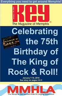 Gerade druckfrisch erschienen ist die neuste Ausgabe des Magazins „Key“, das in Elvis’ Heimatstadt Memphis ein sehr populäres Stadtmagazin ist. Nicht überraschend strotzt die aktuelle Ausgabe nur so von Geburtstagswünschen für den King und ist randvoll mit Storys und Bildern aus Elvis’ Leben und Karriere, wie die vor Ort befindlichen Vertreter des dänischen Fanclubs „Elvis Unlimited“ zu berichten wissen. Datum: 7. Januar 2010 – Quelle: Fanclub „Elvis Unlimited“ |