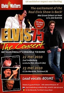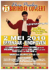 Eine große Show zu Ehren von Elvis Presley und seinem 75. Geburtstag wird am Sonntag, dem 2. Mai 2010, in Eindhoven in den Niederlanden stattfinden. Stargäste der vom niederländischen Fanclub „Elvis For Everyone“ promoteten Veranstaltung sind Duke Bardwell (Elvis’ Bassist und Mitglied der TCB Band von Januar 1974 bis April 1975), Michael Jarrett (Songwriter von Elvis’ „I’m Leavin’“), Robert Washington (Top-Elvis-Darsteller) und Sue Moreno (Sängerin und Top-Model). Das Event in der Location „Effenaar“ beginnt um 20.00 Uhr, Karten gibt es ab sofort zu Preisen zwischen EUR 44,50 und 29,50. Datum: 26. Januar 2010 – Quelle: Fanclub „Elvis For Everyone“ |