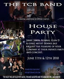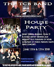 Zu einer faszinierenden Veranstaltung in einzigartiger Umgebung ist die nach 2006 zweite „TCB Band House Party“ geworden, die am Wochenende vom 11. bis zum 13. Juni 2010 wieder auf dem Schloss von Natalie und Jerry Scheff in Schottland stattgefunden hat und über die „The King’s World“ im Vorfeld ausführlich berichtet hatte. Mit James Burton, Ronnie Tutt, Glen Hardin und natürlich Jerry Scheff selbst war Elvis’ TCB Band, die in den Konzertjahren von 1969 bis 1977 das Rückgrat der Bühnenshow des King gewesen war, komplett vertreten und bot im altehrwürdigen Ambiente von „Duns Castle“ zusammen mit Sänger Dennis Jale Unterhaltung vom Feinsten. Die Besucher bekamen zudem die seltene Gelegenheit, die Band in prachtvollem Gala-Outfit erleben zu können (s. Foto!). Datum: 18. Juni 2010 – Quelle: TCB Fanclub |