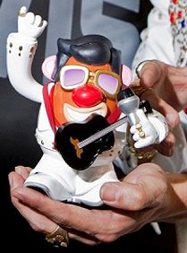 Die Bemühungen von Elvis Presley Enterprises (EPE), das Andenken an den King zu wahren, werden vielleicht manchmal nicht ausreichend gewürdigt. Was die Amerikaner sich gelegentlich jedoch in Sachen Merchandising einfallen lassen, erreicht einfach die Grenzen des Erträglichen. Zur „Elvis Week 2010“ wird ein neuer Artikel erhältlich sein, der bereits jetzt vorgestellt worden ist, nämlich Elvis als „Mr. Potato Head“-Figur. „Mr. Potato Head“ (dt. „Herr Kartoffelkopf“) ist eine bereits seit 1952 existierende und vor allem bei Kindern in Nordamerika sehr beliebte Figur, die regelmäßig im Fernsehen zu sehen und natürlich auch als Spielzeug in diversen Ausführungen zu kaufen ist. Gemeinsam mit dem Spielwarenhersteller „PPW Toys“ wird EPE im August 2010 die Figur in zwei verschiedenen Elvis-Ausführungen herausbringen, einmal im 70er Jahre-Stil (Foto) und einmal im 1968er Comeback-Stil. Datum: 11. Juni 2010 – Quelle: Elvis Presley Enterprises (EPE) |