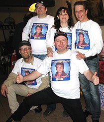 Wow, das hat gerockt! Fast 90 Elvis-Fans waren aus dem gesamten Rheinland, aus Westfalen, aus der Eifel und aus Hessen nach Bonn gekommen, um mit „The King’s World“ den 75. Geburtstag von Elvis Presley am 16. Januar 2010 (nach) zu feiern. Das „Nordlicht“ im Bonner Stadtteil Auerberg erlebte somit einen neuen Rekordbesuch für Elvis-Events und platzte aus allen Nähten. Das Gedränge und Gewühle tat der von Anfang an sehr guten Stimmung jedoch keinerlei Abbruch. Nachdem die Besucher begrüßt worden waren und die Ehrengäste Claus-Kurt Ilge und Elvira Spohn die von Sabine van der Horst gestiftete Elvis-Geburtstagstorte angeschnitten hatten, ging es mit einem Song-Erkennungsquiz weiter, bei dem es acht Elvis-Songs aus allen Schaffensperioden des King zu erraten galt. Am Ende ging Bernie Willems aus Koblenz als Sieger aus dem amüsanten Rätselraten hervor, der stolz den Hauptgewinn in Empfang nahm, die im Handel vergriffene CD-Ausgabe der Box „The Other Sides – Worldwide Gold Award Hits, Vol. 2“. Im weiteren Verlauf des Abends begeisterte Elvis-Darsteller Jack Favor aus Hamburg mit zwei dynamischen Live-Auftritten, die unter großem Applaus der Fans jeweils fast eine Stunde dauerten. Jack Favor, unter seinem bürgerlichen Namen Franz Nübel auch als Design-Redakteur für „The King’s World“ tätig, widmete in ein pinkfarbenes Sakko gekleidet seinen ersten Set dem Elvis der 50er und 60er Jahre, während der zweite Set im „Pinwheel Suit“ (auch „Spectrum Suit“ genannt) ein wenig Elvis-Flair der 70er Jahre in die Location zauberte. Ein weiterer mit großem Interesse bedachter Programmpunkt waren die authentischen Erinnerungen von Elvis’ deutschem Freund Claus-Kurt Ilge, der im Interview mit Peter Beines seine vielen Begegnungen mit dem King während dessen Militärzeit in Deutschland Revue passieren ließ. Und so war es schon weit nach Mitternacht, als die Elvis-Clips von der Video-Leinwand verklungen waren und die letzten Gäste das „Nordlicht“ verließen. Danke an alle Beteiligten, danke an die vielen Besucher aus Nah und Fern, danke an das Team des „Nordlicht“ um den neuen Pächter Toni Stein und vor allem: Thank you, Elvis! Datum: 18. Januar 2010 |