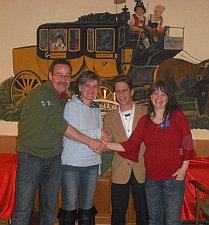 Wie berichtet hat Fan-Urgestein Horst Gerwerth den von ihm initiierten und über viele Jahre hinweg betriebenen Fantreff „Elvis Circle“ in Datteln bei Recklinghausen mit Ablauf des Jahres 2010 vertrauensvoll in die Hände von „The King’s World“ gegeben. In Horsts Sinne werden wir ab 2011 den beliebtesten und traditionsreichsten nordrhein-westfälischen Elvis-Fantreff fortsetzen. Und so laden wir alle Elvis-Fans ein, am Sonntag, dem 13. Februar 2011, ab 15.00 Uhr zum ersten „Elvis Circle“ des neuen Jahres nach Datteln in die „Postkutsche“ zu kommen, um mit uns eine „Elvis Valentine’s Party“ zu feiern. Wie gewohnt gibt es Elvis-Videos auf Leinwand, Elvis-Hits von CD, gut bestückte Verkaufs- und Infostände, interessante Gespräche von Fan zu Fan und leckeres Essen zu sehr fairen Preisen. Dazu ist die eine oder andere Überraschung noch in Vorbereitung. Der Eintritt ist natürlich auch weiterhin frei. Das „Postkutschen“-Team um Raphaela Wagner (Foto, 2. v. l.) freut sich auf die künftige Zusammenarbeit mit „The King’s World“ und auf den Besuch vieler Elvis-Fans aus Nah und Fern! Datum: 22. Dezember 2010 |