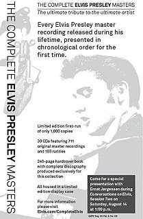 Neben „Viva Elvis – The Album“ hat Elvis’ Plattenfirma Sony Music ein weiteres Großprojekt angekündigt. Es handelt sich um eine neue Super-Box, die den Titel „The Complete Elvis Presley Masters“ tragen wird und dazu den Untertitel „The Ultimate Tribute To The Ultimate Artist“ führen soll. Die Box wird in chronologischer Reihenfolge die Master aller 711 Elvis-Songs enthalten, die zu Lebzeiten des King erschienen sind. Dazu kommen noch 103 Raritäten, so dass es insgesamt 814 Tracks sein werden. Darüber hinaus wird die Box über ein 240 Seiten starkes Buch verfügen, das eine vollständige Elvis-Discografie enthalten wird. „The Complete Elvis Presley Masters“ wird somit die größte Dokumentation des musikalischen Schaffens von Elvis sein, die je auf CD veröffentlicht worden ist. Die Super-Box wird auf zunächst 1000 Exemplare weltweit limitiert sein. Ernst Mikael Jorgensen, bei Sony Music für alle Elvis-Projekte verantwortlich, wird das Projekt im Rahmen der kommenden „Elvis Week“ bei der Veranstaltung „Conversations On Elvis“ am Samstag, dem 14. August 2010, im „Orpheum Theater“ in Memphis offiziell vorstellen. Nicht eindeutig geht aus der bisherigen Ankündigung hervor, ob „The Complete Elvis Presley Masters“ somit auch bereits im August 2010 veröffentlicht werden wird, oder ob das Set erst später auf den Markt kommen wird. Datum: 27. Juli 2010 – Quelle: Sony Music |