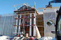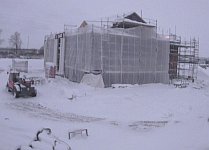 Der viel beachtete Graceland-Nachbau des dänischen Fanclubs „Elvis Unlimited“ nimmt im Ort Randers im nördlichen Dänemark immer mehr Konturen an. Das nebenstehende aktuelle Foto zeigt, dass trotz des grimmigen Winterwetters auf der Baustelle weiterhin fleißig gewerkelt wird…, und dass das Ganze allmählich tatsächlich immer mehr nach „Graceland (in Randers)“ aussieht! Datum: 16. Dezember 2010 – Quelle: Fanclub „Elvis Unlimited“ |
