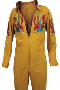 Im Rahmen der „Elvis Week 2010“ wird es wie angekündigt am 14. und 15. August 2010 auch eine weitere große Versteigerung von Elvis-Artikeln geben, die im altehrwürdigen Peabody Hotel im Herzen von Memphis stattfinden wird. Im hochkarätig bestückten Katalog des veranstaltenden Auktionshauses „Heritage Auctions“ fällt dabei nebenstehend abgebildeter pinkfarbener Jumpsuit besonders auf, und viele Fans fragen irritiert, ob Elvis dieses schrille Kostüm tatsächlich getragen hat. Nein, hat er nicht! Der Anzug wurde Anfang der 70er Jahre von der Firma „Nudie’s“ in Hollywood offenbar unaufgefordert für Elvis angefertigt in der Hoffnung, dass dieser den Suit tragen und vielleicht noch weitere Kostüme bestellen werde. Elvis jedoch verzichtete darauf und blieb seinem Kostüm-Designer „I. C. Costumes“ treu. Datum: 16. Juli 2010 – Quellen: Heritage Auctions, Fanclub „Elvis Matters“ |