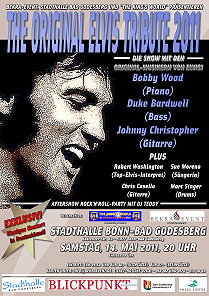 Wie bereits am 4. Dezember 2010 an dieser Stelle berichtet, wird das schon seit 1997 bestehende sensationelle Show-Projekt „Elvis Presley In Concert“ (früher „ELVIS – The Concert“ genannt) am Dienstag, dem 15. Februar 2011, noch einmal in der „Radio City Music Hall“ in New York gastieren. Nun ist für das vorhergehende Wochenende noch eine zweite Show hinzugekommen, nämlich am Samstag, dem 12. Februar 2011, in der „Mohegan Sun Arena“ des gleichnamigen Casinos in Uncasville/Connecticut. Auch hier hatte es in der Vergangenheit schon erfolgreiche Gastspiele der Show mit dem beeindruckenden Konzept ‚Elvis live on Video & His original Band live on Stage’ gegeben. Welche der noch verfügbaren originalen Elvis-Musiker der 70er Jahre an den beiden Shows teilnehmen werden, ist indes immer noch nicht bekannt gegeben worden. Datum: 16. Dezember 2010 – Quelle: Elvis Presley Enterprises (EPE) |
