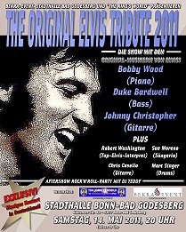 Dieser alte Gentleman scheint unverwüstlich zu sein! Bob Moore, Elvis’ originaler Bassist der 50er und 60er Jahre, hat knapp zwei Wochen nach seinem 78. Geburtstag als Stargast der Elvis-Weihnachts-Show des dänischen Fanclubs „Elvis Unlimited“ am vergangenen Samstag, dem 11. Dezember 2010, einmal mehr Hunderte von Zuschauern in seinen Bann gezogen. Neben Moore gehörten auch noch Elvis’ früherer Tour-Manager Charles Stone und Elvis-Imitator Henrik Busborg mit seiner Band zur Besetzung des Events, das wie immer in der „Vaerket“-Halle im Ort Randers stattfand. Bob Moore hatte von 1958 bis 1968 als Nachfolger von Bill Black an fast allen Studio-Sessions von Elvis mitgewirkt und 1960/61 auch live mit dem King auf der Bühne gestanden. Man hört ihn bei unzähligen Song-Klassikern wie „I Got Stung“, „A Big Hunk O’ Love“, „It’s Now Or Never“, „Fever“, „Little Sister“, „Good Luck Charm“, „Devil In Disguise“, „What’d I Say“, „Memphis Tennessee“ und „Guitar Man“. Datum: 14. Dezember 2010 – Quelle: Fanclub „Elvis Unlimited“ |