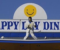 Im Restaurant „Happy Day Diner“ in Rosedale/Maryland war man jahrelang besonders stolz auf die Elvis-Statue aus Fiberglas, die das Dach des Gebäudes zierte. Jetzt haben Diebe die Elvis-Figur gestohlen, wobei sie beim Abmontieren auch noch an den Füßen beschädigt wurde, wie die Spuren zeigten. Die sofort nach Entdeckung des Diebstahls eingeschaltete Polizei hat bislang leider noch keine Spur von ‚Elvis’. Datum: 7. Juli 2010 – Quelle: The Washington Post |