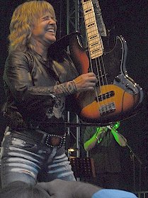 Ihre Cover-Versionen von Elvis-Songs hatte sie nicht mitgebracht, doch ihre Show rockte hart: Suzi Quatro bewies bei ihrem Konzert in Rheinbach, dass sie es auch als 60-Jährige noch drauf hat. Als Headliner des diesjährigen Oldie-Open Air-Festivals „Rheinbach Classics“ ging die Rock-Lady aus Detroit am Freitagabend, dem 16. Juli 2010, auf die Bühne am Himmeroder Wall, auf der vorher die Lokalmatadoren „Play Off“ und die bekannte Gruppe „The Searchers“ die Zuschauer in Stimmung gebracht hatten. Leider waren an diesem herrlichen und warmen Sommerabend nur rund 1500 Fans zu diesem Teil des ansonsten sehr gut besuchten Festivals gekommen; die aber bekamen eine dynamische, rockige Show zu sehen, in der Suzi Quatro begleitet von einer vorzüglichen sechsköpfigen Band mit ihren großen Hits wie „Can The Can“, „48 Crash“, „If You Can’t Give Me Love“ und „Stumblin’ In“ aufwartete und am Ende des über 90-minütigen Auftritts mit Chuck Berrys „Sweet Little Rock’n’Roller“ ein furioses Finale bot. Und wie sehr sie Elvis immer noch im Herzen hat, auch wenn sie die Elvis-Titel aus dem Songprogramm ausließ, hatte die Amerikanerin schon vor dem Konzert gezeigt, als sie sich Peter Beines von „The King’s World“ zum Interview zu Verfügung stellte und sich beinahe mit Tränen in den Augen über ihr Idol aus Memphis, über Graceland und über James Burton äußerte. Das komplette Interview wird in Kürze hier auf unserer Seite nachzulesen sein. Datum: 20. Juli 2010 |