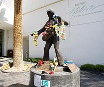 Die Elvis-Figur, die vor etwas mehr als zwei Wochen vom Dach eines Restaurants in Rosedale/Maryland gestohlen worden war (s. unsere Meldung vom 7. Juli 2010), ist wieder aufgetaucht. Sie wurde makaberer Weise auf einem Friedhof ganz in der Nähe des Lokals entdeckt und war nur leicht beschädigt. Restaurant-Besitzer Dimitrios Pigiaditis, ein griechischer Auswanderer und Elvis-Fan, dankte dem Finder Steve Kropkowski und war froh, den jahrelangen Blickfang seines Lokals zurückbekommen zu haben. Wer und was sich hinter dem Diebstahl verbirgt, ist dagegen nach wie vor unbekannt. Datum: 23. Juli 2010 – Quellen: The Baltimore Sun, Elvis News |