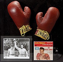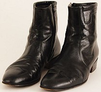 Bei der zweiten der beiden jüngsten Versteigerungen von Elvis-Memorabilia, der „Rock’n’Roll Pop Culture Auction“ des Unternehmens „Gotta Have It Collectibles“ in New York City, gingen die Meinungen zum Ergebnis etwas auseinander. Was die Einen als gut bezeichneten, bewerteten die Anderen als eher mäßig. Doch wie auch immer, wir lassen solche meist fruchtlosen Diskussionen außen vor und werfen auch hier einfach einen interessierten Blick auf die Ergebnisse. Besonders auffällig waren: 12 543,- US-Dollar für das rote Hemd mit weißem Tuch-Umhang aus Elvis’ Privatgarderobe (s. Abbildung), das der King u. a. während der Dreharbeiten zum Dokumentarfilm „Elvis On Tour“ von 1972 getragen hatte... 11 402,- Dollar bzw. 10 365,- Dollar für zwei Diamantringe aus Elvis’ persönlicher Schmucksammlung... 6050,- Dollar für eine von Elvis im Jahr 1956 auf der Bühne getragene Sakko-/Hose-Kombination von „Lansky’s“... ebenfalls 6050,- Dollar für eine goldene Armbanduhr von „Tissot“ mit ‚Elvis Presley’-Gravur, die Elvis seinem Freund George Klein geschenkt hatte... 6000,- Dollar für Elvis’ schwarze Lederstiefel aus dem 1968er Comeback-TV-Special... 3000,- Dollar für einen schwarzen Mantel des King aus den 70er Jahren. Einige Stücke blieben bei der Auktion ohne Gebot wie ein Paar Elvis-Schuhe von 1954 in spektakulärem Leoparden-Look. Datum: 12. Dezember 2011 – Quelle: Gotta Have It Collectibles |