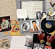 Vor zwei Tagen zu Ende gegangen ist die große Online-Versteigerung „The Rock’n’Roll Auction“ des New Yorker Unternehmens „Gotta Have It Collectibles“, in der auch wieder viele historische Elvis-Stücke angeboten worden sind (s. unsere Ankündigung vom 28. Juni 2011). Den höchsten Preis erzielte Elvis’ schwarzer Mohair-Anzug mit rotem Schal und schwarzen Stiefeln von 1969 mit 36 772,- US-Dollar. Für Elvis’ 1956er Sakko-/Hemd-/Hose-Kombination von „Lansky Brothers“ (obere Abbildung) wurden 25 725,- Dollar bezahlt, während für einen zum 1963er Spielfilm „It Happened At The World’s Fair“ hergestellten jedoch im Film von Elvis nicht getragenen und nur auf Promo-Fotos zu sehenden Blazer mit Hose nur enttäuschende 3000,- Dollar zu bekommen waren. Für die von Elvis handgeschriebene Konzert-Songliste zur zweiten Show des großen 1969er Comeback-Gastspiels in Las Vegas ging ein Höchstgebot von 5849,- Dollar ein, und eine dunkelgraue Hemd-/Hose-Kombination mit goldenem Gürtel von „I. C. Costumes“ aus Elvis’ Privatgarderobe der späten 60er und frühen 70er Jahre kam am Ende auf 10 631,- Dollar. Hohe Summen wurden auch für einige Elvis-Schmuckstücke bezahlt wie einen goldenen Diamant- und Opal-Ring (untere Abbildung, 10 365,-) und eine goldene Kette mit Goldkreuz (10 292,-). Ein paar weitere Stücke blieben sicherlich zum Unmut des Veranstalters ohne Gebot und konnten nicht verkauft werden wie die goldene „Tissot“-Uhr mit Elvis Presley-Schriftzug, die der King seinem Freund George Klein geschenkt hatte. Das Startgebot von 5000,- Dollar war hier wohl zu optimistisch angesetzt worden. Datum: 25. Juli 2011 – Quelle: Gotta Have It Collectibles |