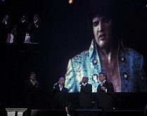 Wie von uns schon im August 2011 angekündigt worden war, befand sich Elvis’ ehemaliger Begleitchor der späten 60er und frühen 70er Jahre „The Imperials Quartet“ (heute: „Elvis’ Imperials“) in den vergangenen eineinhalb Wochen auf vorweihnachtlicher Europa-Tournee. Bei allen Konzerten konnte die Gruppe mit den Original-Mitgliedern Terry Blackwood und Joe Moscheo und den neueren Mitgliedern Royce Taylor und Darrell Toney dabei große Erfolge feiern und das Publikum in den meist ausverkauften Sälen begeistern, ob nun mit dem österreichischen Elvis-Interpreten Dennis Jale in Wien (9., 10. und 11. Dezember 2011, organisiert von Dennis Jale, oberes Foto) und im deutschen Bischofsgrün (16./17. Dezember 2011, organisiert von Elvis-Aktivist Markus Henfling) oder am gestrigen Sonntag, dem 18. Dezember 2011, mit dem niederländischen Elvis-Interpreten Bouke und dem britischen Star-Gitarristen Tony Smith im niederländischen Veldhoven (organisiert vom belgischen Fanclub „Elvis Matters“, unteres Foto). Das Quartett bewies bei den Konzerten einmal mehr, dass es nichts von seiner stimmlichen Brillanz verloren hat und immer noch spielend in der Lage ist, eine authentische Hommage an Elvis Presley zu präsentieren. Datum: 19. Dezember 2011 – Quellen: Dennis Jale, Markus Henfling, Fanclub „Elvis Matters“ |