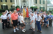 Eine schöne Ehrung erhielt Elvis am gestrigen Freitag, dem 22. Juli 2011, vom Veteranen-Verband der 3. US-Panzerdivision, zu der das Bataillon gehört hatte, in dem Elvis von Oktober 1958 bis März 1960 in Deutschland den größten Teil seines Wehrdienstes abgeleistet hatte. Mitglieder des Verbandes und deren Angehörige besuchten Elvis’ Villa Graceland in Memphis und brachten eine Gedenktafel mit, die an Elvis’ Dienstzeit in der US-Army und in der Division erinnert und Elvis als einen hervorragenden Soldaten würdigt, der stolz gewesen sei, seinem Land zu dienen. Elvis, dem eine solche nicht-musikalische Anerkennung bekanntermaßen wichtig gewesen war, hätte sich über diese Auszeichnung sicherlich sehr gefreut. Datum: 23. Juli 2011 – Quelle: Elvis Presley Enterprises (EPE) |