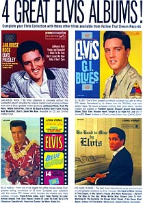Vielen Elvis-Fans ist die nebenstehend abgebildete Werbung auf der Rückseite der gerade veröffentlichten neuen Doppel-LP „The Pot Luck Sessions“ des Sony-eigenen offiziellen Sammler-Labels „Follow That Dream Records (FTD)“ aufgefallen. Die Werbung erweckt den Eindruck, dass das „FTD“-Label in naher Zukunft nach „Jailhouse Rock“ und „Blue Hawaii“ (sowie anderen LP-Neuveröffentlichungen wie „Viva Las Vegas“, „How Great Thou Art“, „Standing Room Only“, „Good Times – The Outtakes“ und „The Jungle Room Sessions“) auch die historischen Elvis-Alben „G. I. Blues“ und „His Hand In Mine“ aus dem Jahr 1960 als Vinyl-Doppel-LPs in Deluxe-Aufmachung auf den Sammler-Markt bringen wird. Speziell die Vinyl-Freaks unter den Elvis-Sammlern würden sich darüber gewiss sehr freuen. Eine offizielle Bestätigung durch „FTD“-Chef Ernst Jorgensen oder durch Sony Music selbst gibt es dafür freilich noch nicht. Selbstverständlich werden wir aber über den weiteren Veröffentlichungsfahrplan von „FTD“ berichten, sobald konkrete Informationen dazu vorliegen. Datum: 6. Juli 2011 – Quellen: Doppel-LP „The Pot Luck Sessions“, diverse |