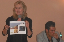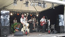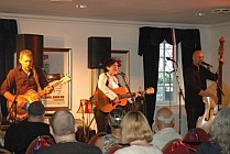 Unter dem vielerorts in Mittel- und Nordeuropa herrschenden schlechten Wetter der letzten Tage litt auch ein wenig das 4. Juli-Event des dänischen Fanclubs „Elvis Unlimited“, das am vorgestrigen amerikanischen Nationalfeiertag, dem 4. Juli 2011, wie angekündigt bei „Graceland Randers“ stattgefunden hat. Wegen der hohen Regenwahrscheinlichkeit mussten weite Teile der als Open Air-Event mit Picknick-Charakter geplanten Veranstaltung ins Innere von „Graceland Randers“ verlegt werden. Dennoch erfreuten sich viele Besucher an dem Programm, in dessen Mittelpunkt der Auftritt der dänischen Country-Sängerin und Elvis-Interpretin Ester Brohus und ihrer Band stand (s. Foto). Datum: 6. Juli 2011 – Quelle: Fanclub „Elvis Unlimited“ |
