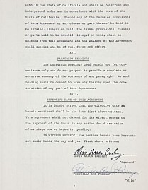 Seit dem vorgestrigen Dienstag, 13. Dezember 2011, ist auch die dritte der zuletzt angekündigten Versteigerungen von Elvis-Memorabilia gelaufen. Bei der Veranstaltung „Music & Entertainment Signature Auction“ des Unternehmens „Heritage Auctions“ in Dallas/Texas kamen dabei wieder viele wertvolle und interessante Stücke aus der Elvis-Geschichte unter den Hammer. So wurde u. a. die erste Scheidungsvereinbarung zwischen Elvis und Priscilla Presley vom 15. August 1972 verkauft, nach der die (Ex-)Frau des King 100 000,- Dollar Abfindung, zwei von Elvis’ Luxus-Autos und sein „Harley-Davidson“-Motorrad erhalten sollte. Der Vertrag (Abbildung: letzte Seite mit den Original-Unterschriften von Elvis und Priscilla), den sich Priscilla Presley mit anwaltlichem Druck wenig später erheblich ‚aufbessern’ ließ, wechselte für 8962,- US-Dollar den Besitzer. Ein pinkfarbenes Hemd mit schwarzer Hose und schwarz-weißen Schuhen von Elvis aus dem Jahr 1955 erzielte 19 717,- Dollar, Elvis’ 1958er „Omega“-Armbanduhr kam auf 15 535,- Dollar, eine weiße „Lansky’s“-Hose aus Elvis’ Privatgarderobe der späten 60er Jahre brachte 4780,- Dollar, und für diverse originale Elvis-Singles aus der Zeit bei „Sun Records“ in den Jahren 1954/55 wurden zwischen 400,- und 1400,- Dollar bezahlt. Offenbar nicht verkauft werden konnte dagegen Joe Guercios Ausgabe des Veranstaltungsbuches zur Fernseh-Show „Aloha From Hawaii“ von 1973 (s. unsere Ankündigung der Auktion vom 22./23. November 2011). Datum: 15. Dezember 2011 – Quelle: Heritage Auctions |