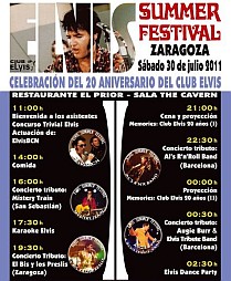 Ein schönes Jubiläum feiert in diesem Monat der spanische Elvis Presley-Fanclub „Club Elvis Spain“: Vor 20 Jahren, im Sommer 1991, war der Club gegründet worden. Zum 20-jährigen Bestehen veranstalten die Iberer am Samstag, dem 30. Juli 2011, ein großes Event unter dem Titel „Elvis Summer Festival“, das somit vom Namen her natürlich an die Sommer-Konzertgastspiele von Elvis im „International Hotel“ bzw. „Hilton Hotel“ in Las Vegas angelehnt ist. „Club Elvis Spain“ präsentiert bei seinem „Elvis Summer Festival“ nicht weniger als fünf Konzerte mit spanischen Elvis-Imitatoren und Elvis-Cover-Bands. Dazu gibt es Elvis-Video-Vorführungen, eine Filmdokumentation über die Geschichte des Fanclubs, einen Elvis-Karaoke-Wettbewerb, Verkaufsstände mit Elvis-Artikeln aller Art und zum Abschluss eine Elvis-Disco, die bis in die Morgenstunden dauern wird. Location des bereits um 11.00 Uhr vormittags beginnenden Events ist der Saal „The Cavern“ im Restaurant „El Prior“ in der Stadt Saragossa, der 700 000 Einwohner zählenden Hauptstadt Aragoniens im Norden Spaniens. Der Eintritt kostet zwischen 65,- Euro (Ganztags-Ticket) und 45,- Euro (Abend-Ticket). Datum: 10. Juli 2011 – Quelle: Fanclub „Club Elvis Spain“ |