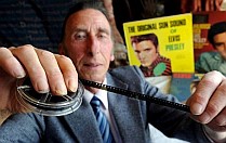 Am 28. März 1957 hatte Elvis mit einem Konzert im „International Amphitheatre“ in Chicago/Illinois eine große Frühjahrstournee durch die USA und erstmals auch Kanada gestartet, die zu einem Triumphzug ohnegleichen des frischgebackenen King of Rock’n’Roll wurde. In Chicago filmte die örtliche Polizei Elvis’ Show, um den von seinen Gegnern und Kritikern verbreiteten Vorwürfen auf den Grund zu gehen, Elvis’ Auftritte seien aufgrund seiner zutiefst ‚unanständigen’ Bewegungen obszön und jugendgefährdend. Kurze Sequenzen des Films, die Elvis in Action und erstmals in seinem rasch berühmt gewordenen „Gold Lamé Suit“ zeigen (oberes Foto), waren 1981 im Dokumentarfilm „This Is Elvis“ zu sehen, und natürlich erinnern sich viele Fans auch daran, dass Elvis im 1968er Comeback-TV-Special die denkwürdige aber letztlich folgenlose Polizeiaktion erwähnte. In Kürze nun wird das historische Dokument in einer Auktion zu erwerben sein. Der heutige Besitzer, ein britischer Elvis-Fan namens Bill Ellis (67) aus Rhyl/Wales (unteres Foto), will den Film, der ohne Original-Ton ist, im nächsten Monat verkaufen und hofft darauf, mindestens 10 000,- Britische Pfund (= ca. 11 300,- Euro nach heutigem Kurs) zu erhalten. Um welche Auktion es sich konkret handelt und wann diese genau stattfindet, war zunächst nicht in Erfahrung zu bringen, doch werden wir natürlich an der Sache dran bleiben und weiter darüber berichten, sobald zusätzliche Informationen vorliegen. Datum: 23. Juli 2011 – Quelle: The Daily Mail |