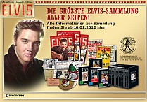 Der weltweit agierende italienische Verlag „DeAgostini“, der auf Sammel-Magazine mit Beilagen spezialisiert ist, bringt ab Januar 2012 in Zusammenarbeit mit Elvis Presley Enterprises (EPE) eine neue Reihe von Magazin-/DVD-Kombinationen zu Elvis Presley heraus, mit der der King in seinem 35. Todesjahr besonders geehrt werden soll. Jede Ausgabe besteht aus einem 28-seitigen Elvis-Heft, einer DVD-Beilage mit einem Elvis-Film und Reproduktionen von Elvis-Memorabilia aus dem EPE-Archiv in Memphis. Verfügbar ist auch eine Sammelbox für die einzelnen Ausgaben. In Deutschland wird die Reihe am 18. Januar 2012 starten. Die Ausgaben werden ab dann 14-tägig im Zeitschriftenhandel erhältlich sein. Datum: 22. Dezember 2011 – Quelle: DeAgostini GmbH |