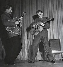 Einer der wichtigsten, bedeutendsten und einflussreichsten Musiker nicht nur Elvis Presleys sondern der gesamten Rock- und Pop-Musik-Geschichte feiert einen großen und runden Geburtstag: Scotty Moore wird heute 80 Jahre alt! Geboren worden war der legendäre Gitarrist am 27. Dezember 1931 als Winfield Scott Moore auf einer Farm in der Nähe von Gadsden/Tennessee. Nachdem er bereits im Alter von nur 8 Jahren das Gitarrespielen erlernt hatte, begann seine Profi-Karriere im Jahr 1952 als Gitarrist der Country-Band „The Starlite Wranglers“, in der auch der Bassist Bill Black spielte. Ab 1954 bildete Scotty Moore auf Vermittlung von „Sun Records“-Besitzer Sam Phillips zusammen mit eben diesem Bill Black sowie dem bald dazukommenden Schlagzeuger D. J. Fontana die „Blue Moon Boys“, Elvis Presleys erste feste Begleitband. Von 1954 bis 1958 war Scotty in dieser Funktion bei nahezu allen Studio-Sessions und allen Live-Auftritten des vom Hillbilly-Sänger zum König des Rock’n’Roll aufsteigenden Elvis dabei und prägte mit seinem markanten, druckvollen und virtuosen Gitarrenspiel dessen Musik der frühen Jahre nachhaltig. Auch nach dem Ende von Elvis’ Militärzeit im März 1960 blieb Scotty dem King erhalten und spielte weiter mit ihm bis einschließlich zum Comeback-TV-Special von 1968. Ab den 70er Jahren arbeitete Scotty Moore mit vielen anderen Größen des Musikbusiness wie Carl Perkins, Jerry Lee Lewis, Johnny Cash, Dolly Parton, Ringo Starr, Keith Richards und Eric Clapton und trat nach Elvis’ Tod im August 1977 bis vor wenigen Jahren bei unzähligen Elvis-Tribut-Veranstaltungen auf. Im Jahr 2000 wurde er in die „Rock’n’Roll Hall Of Fame“ aufgenommen. Zur Feier seines heutigen 80. Geburtstages haben sich viele frühere Weggefährten und sogar Elvis’ Ex-Frau Priscilla Presley angekündigt. „The King’s World“ gratuliert Scotty Moore herzlich zu seinem großen Ehrentag und wünscht ihm noch viele glückliche Jahre! Datum: 27. Dezember 2011 – Quellen: Diverse |