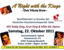 Viele Elvis-Fans und Stammgäste von „The King’s World“ haben uns in den letzten Tagen gefragt, wann denn nach dem großen Erfolg beim letzten Mal der nächste Fantreff „Elvis Circle“ in Datteln stattfinden wird. Gerne teilen wir hierzu mit, dass der erste nächstjährige Termin des „Elvis Circle“ Sonntag, der 11. März 2012, sein wird. Am Programm und der Besetzung der Veranstaltung arbeiten wir noch, doch werden wir alle Einzelheiten natürlich frühzeitig bekannt geben. Fest steht indes, dass der „Elvis Circle“ auch im Jahr 2012 seine Heimat im Lokal „Zur Postkutsche“ in Datteln bei Recklinghausen haben wird, dessen Betreiber sich schon auf die Fortsetzung der Zusammenarbeit mit „The King’s World“ und auf den erneuten Besuch vieler Elvis-Fans freuen. Tipp im Zusammenhang mit dieser Meldung: Auf der Startseite unserer TKW-Internetseite befindet sich unten ein Laufband, mit dem wir immer weit im Voraus auf künftige Veranstaltungsprojekte von oder mit „The King’s World“ hinweisen! Datum: 16. Dezember 2011 |