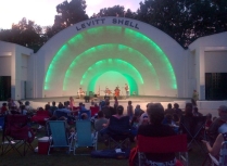 Jedes Jahr im Sommer ist die historische Freilichtbühne „Levitt Shell“ (ehem. „Overton Park Shell“, oberes Foto) im „Overton Park“ in Memphis/Tennessee Schauplatz des „Indie Film Festival“. In diesem Jahr 2012 wird das Festival als „Concert Film Series“ präsentiert werden und ab dem 21. Juli 2012 jeden Samstag einen populären Konzert-Film auf Großbildleinwand zeigen. Und siehe da, so kurz vor Beginn der am 10. August 2012 startenden „Elvis Week“ zum 35. Todestag des King darf auch Elvis Presley bei der populären Filmvorführungsreihe nicht fehlen. Und so wird quasi als Vorbote zur „Elvis Week“ der bekannte Konzert-Dokumentarfilm „Elvis On Tour“ von 1972 (untere Abbildung) am 4. August 2012 auf dem Programm des Festivals stehen, wobei Elvis Presley Enterprises (EPE) als Supporter des Abends in Erscheinung treten wird. Der Eintritt zur Vorführung ist ebenso frei wie der zu allen anderen Präsentationen innerhalb des „Indie Film Festival“. Die renovierte und restaurierte Freilichtbühne „Levitt Shell“ war in ihrer ursprünglichen Form als „Overton Park Shell“ ein historischer Ort der Elvis-Geschichte, da der King ganz zu Beginn seiner einzigartigen Karriere in dieser Location am 30. Juli 1954 einen seiner allerersten öffentlichen Auftritte gehabt hatte. Am 5. August 1955 hatte Elvis dann noch ein zweites Mal auf der Freilichtbühne gespielt, und es ist umso schöner, dass er in Form der „Elvis On Tour“-Filmvorführung nach all den Jahren jetzt an diese historische Stätte zurückkehren wird. Datum: 2. Juli 2012 – Quelle: Indie Film Festival |