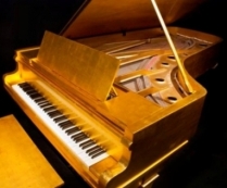 Ein mit Goldüberzug versehenes Klavier aus dem früheren Besitz von Elvis steht seit Neuestem in den USA zum Verkauf. Das Instrument hatte in den 60er Jahren in Elvis’ Villa Graceland in Memphis gestanden und war 1968 von Priscilla Presley als Überraschung für Elvis mit dem Goldüberzug versehen worden. Jahre später hatte Elvis das wertvolle Instrument seiner Tante Nash geschenkt, ehe es 1991 von dem Unternehmen „148 Investment Group“ für 2,- Millionen Dollar erworben und in der „Country Music Hall Of Fame“ in Nashville/Tennessee ausgestellt worden war. Jetzt bietet das Unternehmen aus Gründen, die nicht bekannt sind, das Goldklavier für 3,8 Millionen Dollar zum Kauf an. Ist doch ein Schnäppchen, oder?! Datum: 5. Juli 2012 – Quelle: Elvis-Express |