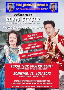 Es ist wieder Elvis-Event-Zeit! Am morgigen Sonntag, dem 15. Juli 2012, findet in Datteln bei Recklinghausen wie angekündigt die nächste Auflage unserer beliebten Veranstaltungsreihe „Elvis Circle“ statt, diesmal als „Elvis-Sommerfest 2012“. Als Hauptprogrammpunkte präsentieren wir wieder Video-Clips aus Elvis’ Konzerten und Filmen auf großer Leinwand sowie eine zweiteilige Live-Show mit dem bekannten Elvis-Interpreten Harry Johnson. Bei dem traditionellen Elvis-Song-Quiz wird es ein weiteres Mal wertvolle Elvis-Preise zu gewinnen geben, und auf einer gut bestückten Fanartikel-Börse können die Besucher nach neuen und alten Elvis-Artikeln aller Art stöbern. Daneben werden wir auf der Terrasse unserer Location grillen, und wir hoffen, dass sich viele Elvis-Fans auch von eventuell nicht ganz so gutem Wetter nicht davon abhalten lassen werden, unserer Einladung zum „Elvis-Sommerfest 2012“ zu folgen. Dies gilt umso mehr, als wir bei dem Event die in der vorhergehenden Meldung ausführlich beschriebene gemeinsame Protest-Aktion gegen den Skandal-Bericht im Magazin „Freizeit-Revue“ durchführen wollen, für die wir IHRE Unterstützung erbitten! Das „Elvis-Sommerfest 2012“ in der „Postkutsche“ in Datteln beginnt um 15.00 Uhr. Der Eintritt ist wie gewohnt frei, doch werden wir uns über Spenden zugunsten des von TKW unterstützten Kinderhospizes „Arche Noah“ in Gelsenkirchen freuen. Weitere Infos zur Veranstaltung haben wir im Link „Elvis-Events“ hier auf unserer Internetseite. Datum: 14. Juli 2012 |
